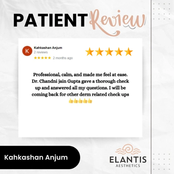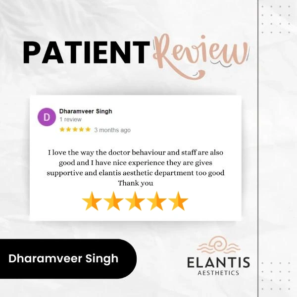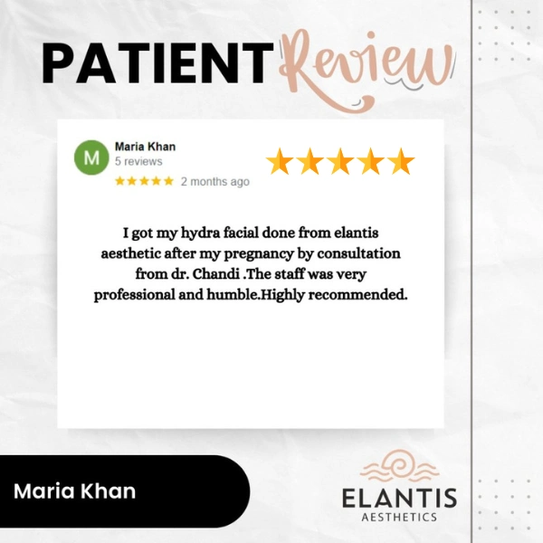 I am very glad to had hydra facial during delivery from elantis aesthetic by Dr Chandni I really love the facial and staff ms naaz she was very punctual at time and corporative